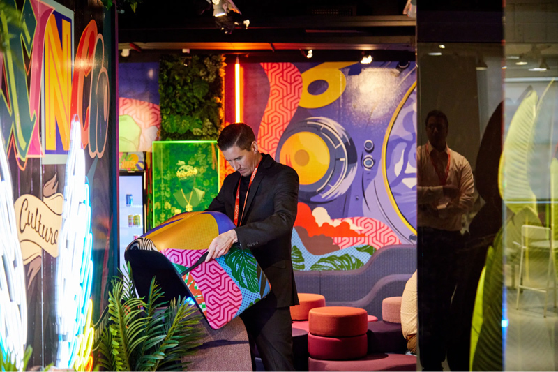 Since NeoCon is a physically demanding event, taking occasional breaks is essential. Some exhibitors design their showrooms with lounge spaces where attendees can relax and recharge. As the event concludes each day, navigating the crowd while leaving can be challenging. To avoid peak traffic, attendees may choose to either leave slightly earlier or stay longer and attend one of the exhibitor-hosted evening events.